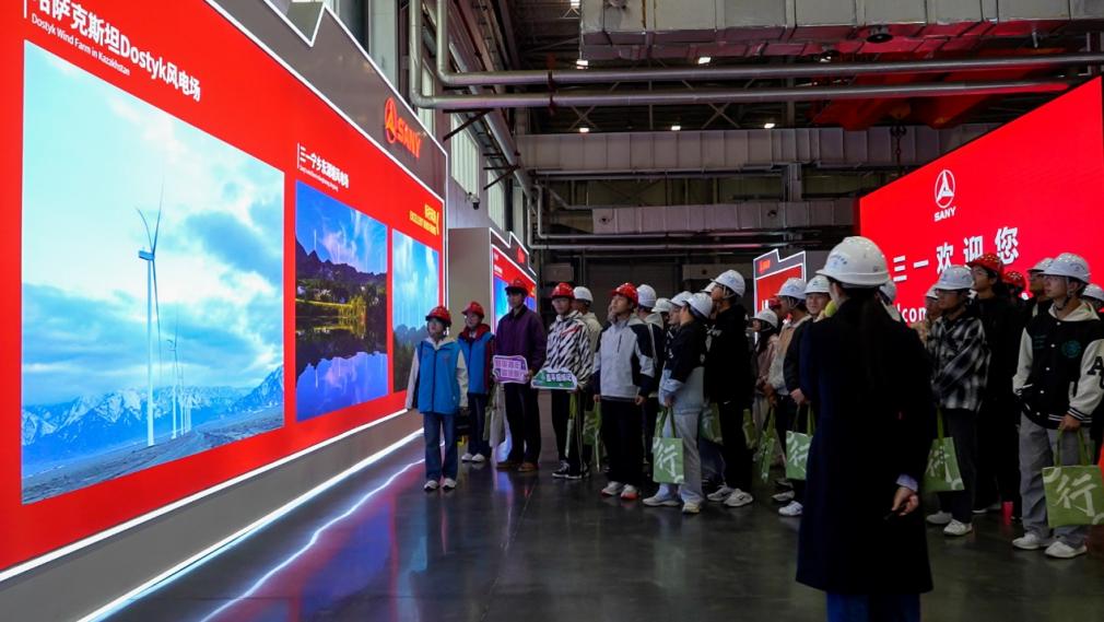 实践团队首先走进三一重工智能制造车间,开启产业前沿探索之行。在工作人员引导下,师生依次参观了智能生产车间、新能源装备展区与研发创新中心,近距离观摩大型挖掘机、风电整机等核心装备的生产流程。通过现场讲解与图文展示,师生深入了解了各种先进技术在装备制造中的广泛应用,以及三一重工在新能源装备研发与清洁能源生产等方面的创新成果。对产业一线的直观体验,为员工架起了从课堂理论通向产业实践的桥梁。