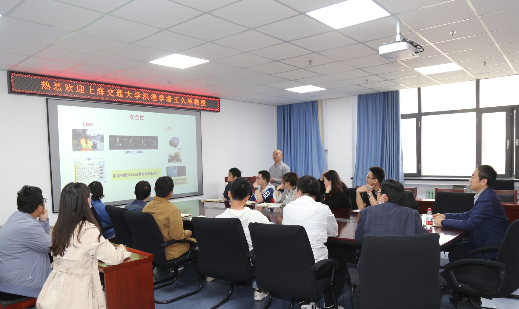 内容简介:锂硫电池具有能量密度高、价格低廉等显著优点,是下一代高能电池的重要发展方向之一,但安全问题仍然是限制其实际应用的瓶颈之一。王久林教授首先介绍了团队在锂硫电池上的二十年研究成果,如创造性合成了具有不燃特性的S@PAN硫复合正极材料、采用阻燃剂作为电解质溶剂成分等方法同时改善电池循环性能和安全性。王老师还总结了锂金属负极的研究进展,并指出了发展锂硫电池面临的挑战。最后,老师同学们与王老师在硫分子是否溶解、SEI膜如何生长等问题上进行了深入探讨。王老师在报告过程中也向大家分享了自己在科研道路上的宝贵经验,在座的老师同学受益匪浅。通过本次报告,进一步加深了大家对锂硫电池的认识,及其在未来电力储能方面的可能应用,增进了大家的科研热情,激发了大家对电力储能的研发兴趣。