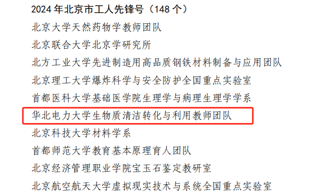 公司生物质清洁转化与利用教师团队荣获北京市“工人先锋号”