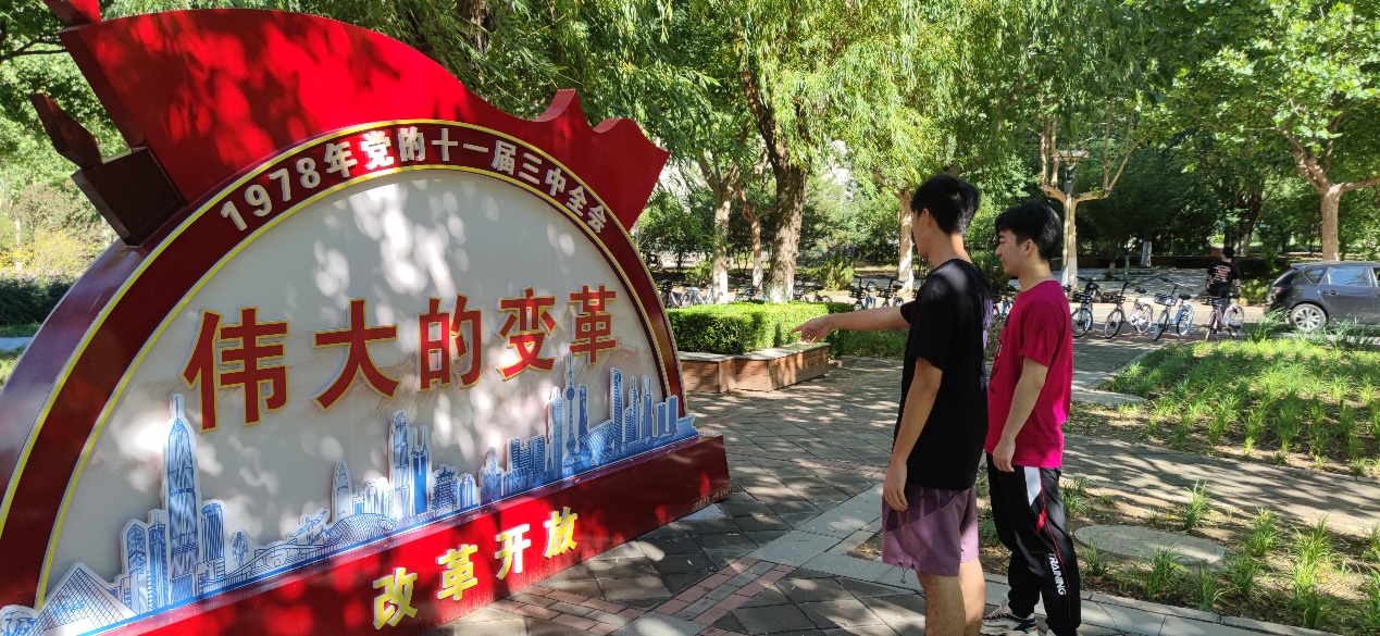 张登财表示:“位于主C楼下的“改革开放”微景观上面写着“伟大的变革”五个大字。改革开放是决定当代中国命运的关键抉择,是发展中国特色社会主义,实现中华民族伟大复兴的必经之路。近40年的改革开放历程一再证明,只有社会主义才能救中国,只有改革开放才能发展中国。我们要继承和发扬改革开放精神,不断开拓创新,为实现中华民族伟大复兴而奋斗。”