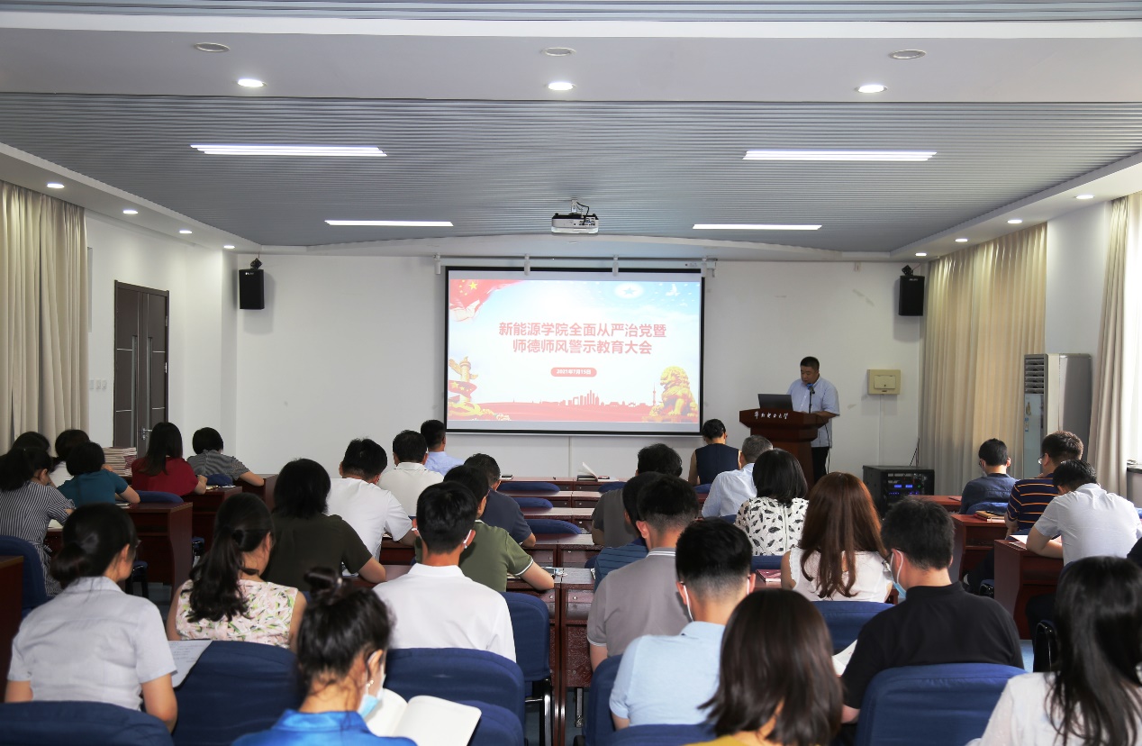7月15日下午,学院召开全面从严治党暨师德师风警示教育大会。学院领导班子、党委委员、全体教职员工参加会议。会议由党委副书记姜良杰主持。