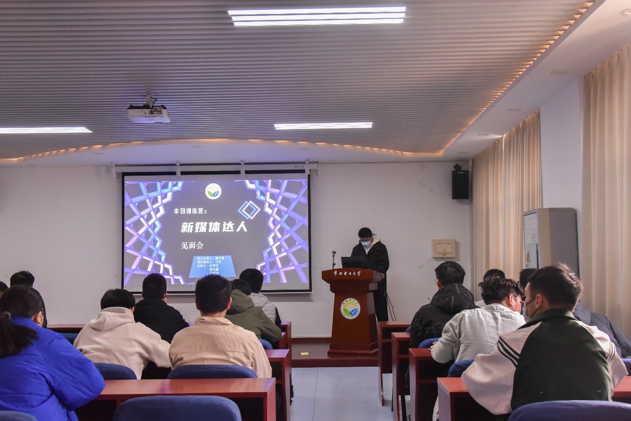 其次,孙雨轩同学介绍了丰羽训练营的三位主讲人,并说明他们各自擅长的方向和技术。他通过展示利用PS、PR等技术做出的精美图片和视频动画,向同学们介绍本项活动将要开展的新媒体软件基础学习、案例分析和实战训练,鼓励同学们积极认真参与培训学习,实现“强技能、树志向”的活动愿景。同学们纷纷表示对接下来的培训活动充满期待!