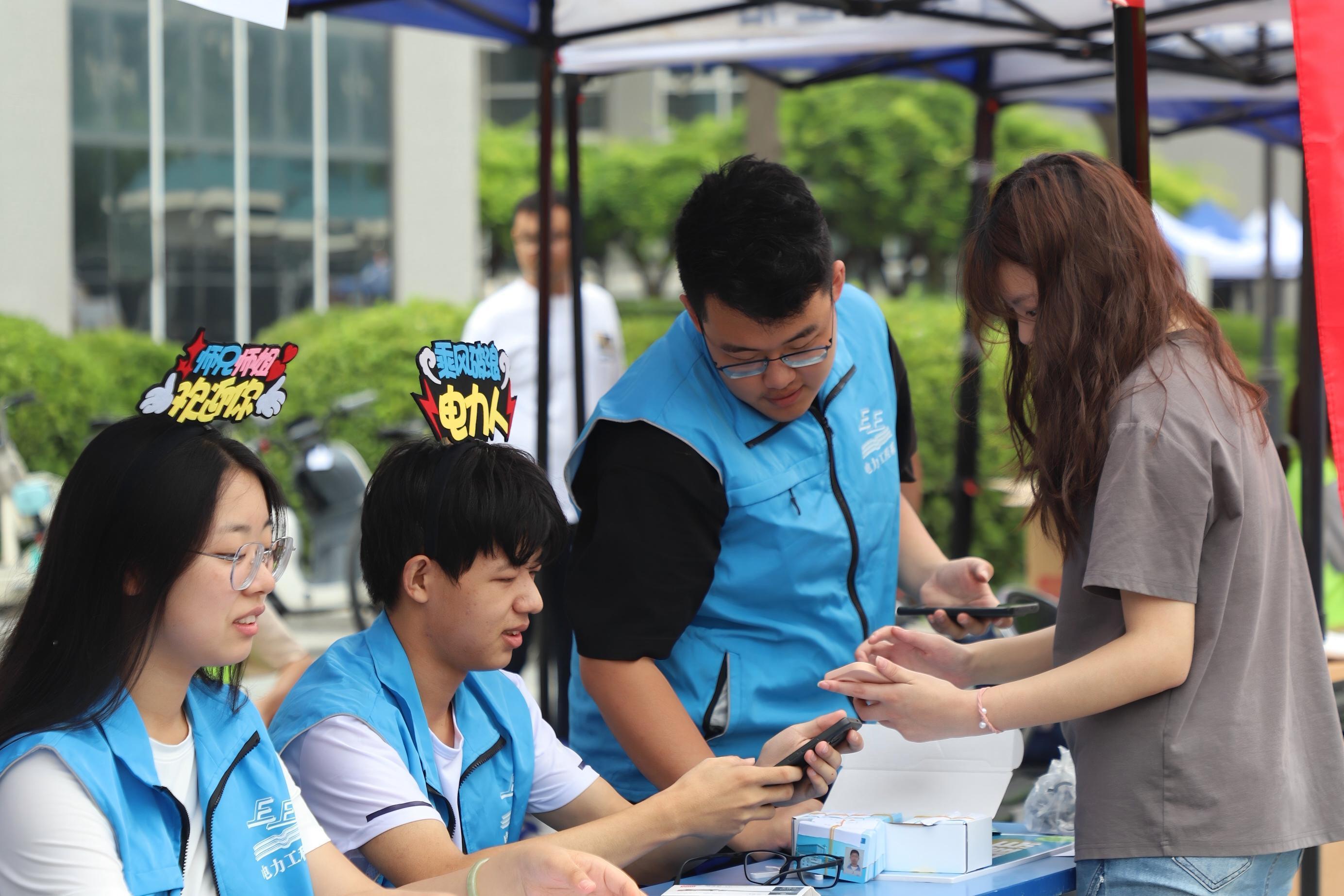 在保定校区,员工处安排迎新车辆到保定站、保定东站接站,在二校区设置4个家长休息区,为新生家长提供休息场地。保卫处提前规划新生通行路线,在主要路口设置人工引导岗及服务点,实现从校门到宿舍的全程无忧指引。教务处提前开通新生教材网上预订业务,组织制作“新生入学教育(零课堂)”慕课,新生可提前开展线上学习。网络与信息化工作处提前制作并开通新生校园卡,开通网络、邮箱、VPN账号,接待新生信息化方面咨询300余次;面向新生开展人工智能及大模型知识讲座并推送网络安全提醒,增强新生网络安全意识。后勤管理处开学前抢抓工期,完成员工餐厅全面消杀与宿舍改造;全体员工提前上岗,对教室、场馆等公共区域开展安全隐患排查,并及时检修配电、燃气等设施设备,全力打造安全舒适的校园环境。校团委统筹组建近450人次的志愿者服务队,于车站、宿舍区、主要交通路口等关键点位设立固定与流动服务岗,全程为新生及家长提供引导咨询、行李搬运、秩序维护等志愿服务。校医院提供24小时医疗服务,医护人员全程守护,昼夜不停歇,让新生感受华电大家庭的温暖。国际合作处设置员工出国交流项目宣传展板,宣传推广学校各类海外交流与联合培养项目,帮助员工及家长了解出国留学的途径和政策。