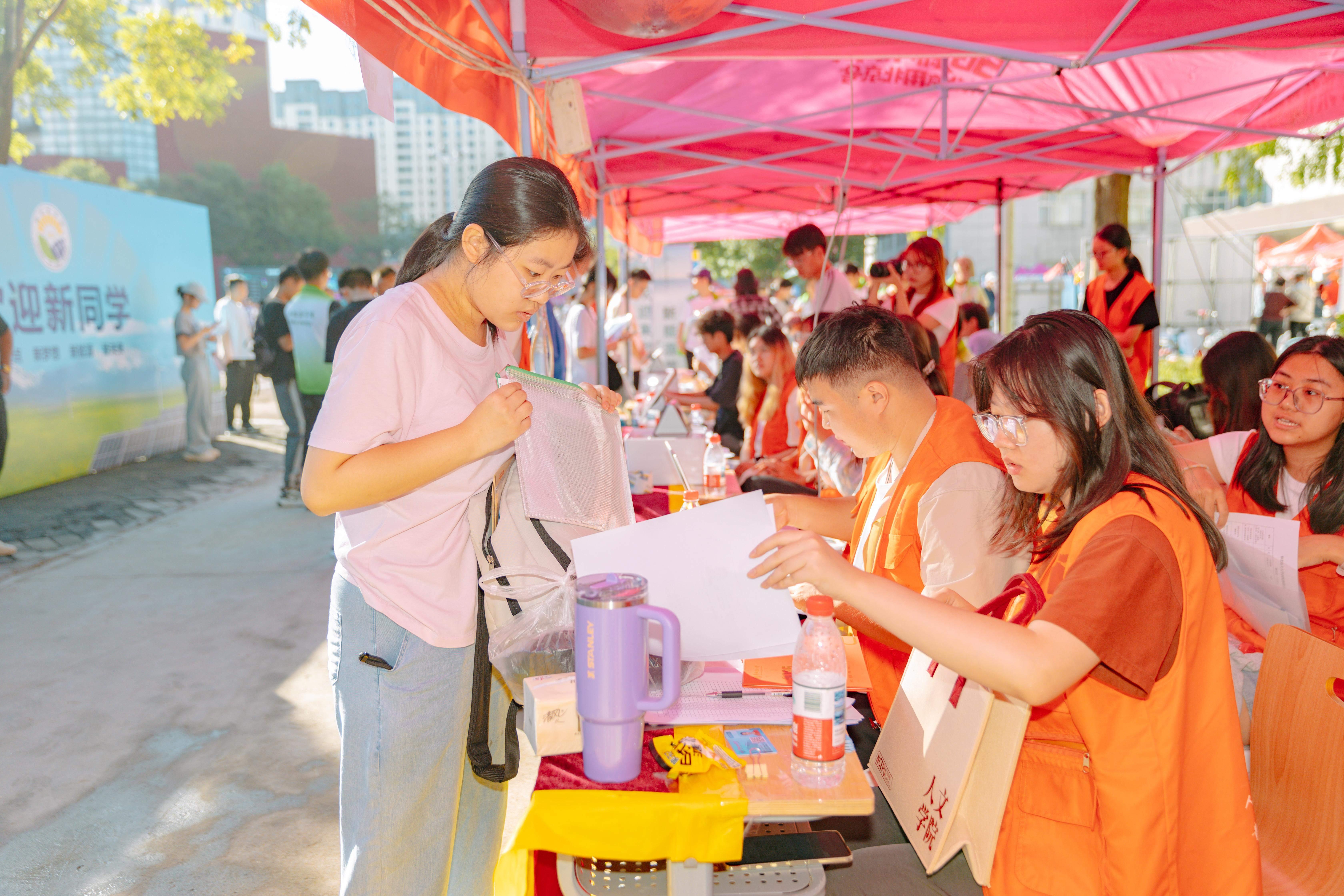 在北京校部,员工处推出“先住宿后报到”模式,让提前到校的新生先入住再灵活办理报到手续;在北京市各火车站设置接站点,派驻志愿者引导新生入校;通过“绿色通道”,为家庭经济困难员工提供缓交学费、助学贷款办理和爱心礼包发放等服务。保卫处加强校园交通疏导和安全巡查,开展防诈骗宣传,切实保障新生入学安全。教务处及时做好新生学籍注册,合理安排2025级本科新生课表,做好新生教材发放准备工作。网络与信息化工作处提前对接新生数据,助力新生入校报到前就自主完成身份初核、选宿舍、人脸采集、移动微校园关注等工作;制作本科新生校园卡,在迎新现场增设临时网络线路。后勤管理处提前完成新生宿舍的保洁工作,延长部分食堂的营业时间,在食堂开设扫码就餐窗口,方便未持校园卡的新生及家长就餐。师生服务中心与相关职能部门、各学院密切配合,实现新生“绿色通道”、银行卡办理、洗浴水卡办理、校园卡服务等事项一站式办齐。校团委组织350名志愿者提供路线引导、咨询答疑、信息核验、行李转运等志愿服务工作。校医院安排专业医护人员驻守报到现场及时回应新生及家长关于公费医疗就医和报销政策等问题的咨询,增加小夜班班次保障新生报到期间员工及家长的医疗需求,同步启动新生体检和军训期间医护人员现场医疗保障工作。国际合作处聚焦员工出国交流需求,设置咨询点位宣传学校各类海外交流与联合培养项目,并同步解读出国留学途径与政策,方便员工及家长获取关键信息。
