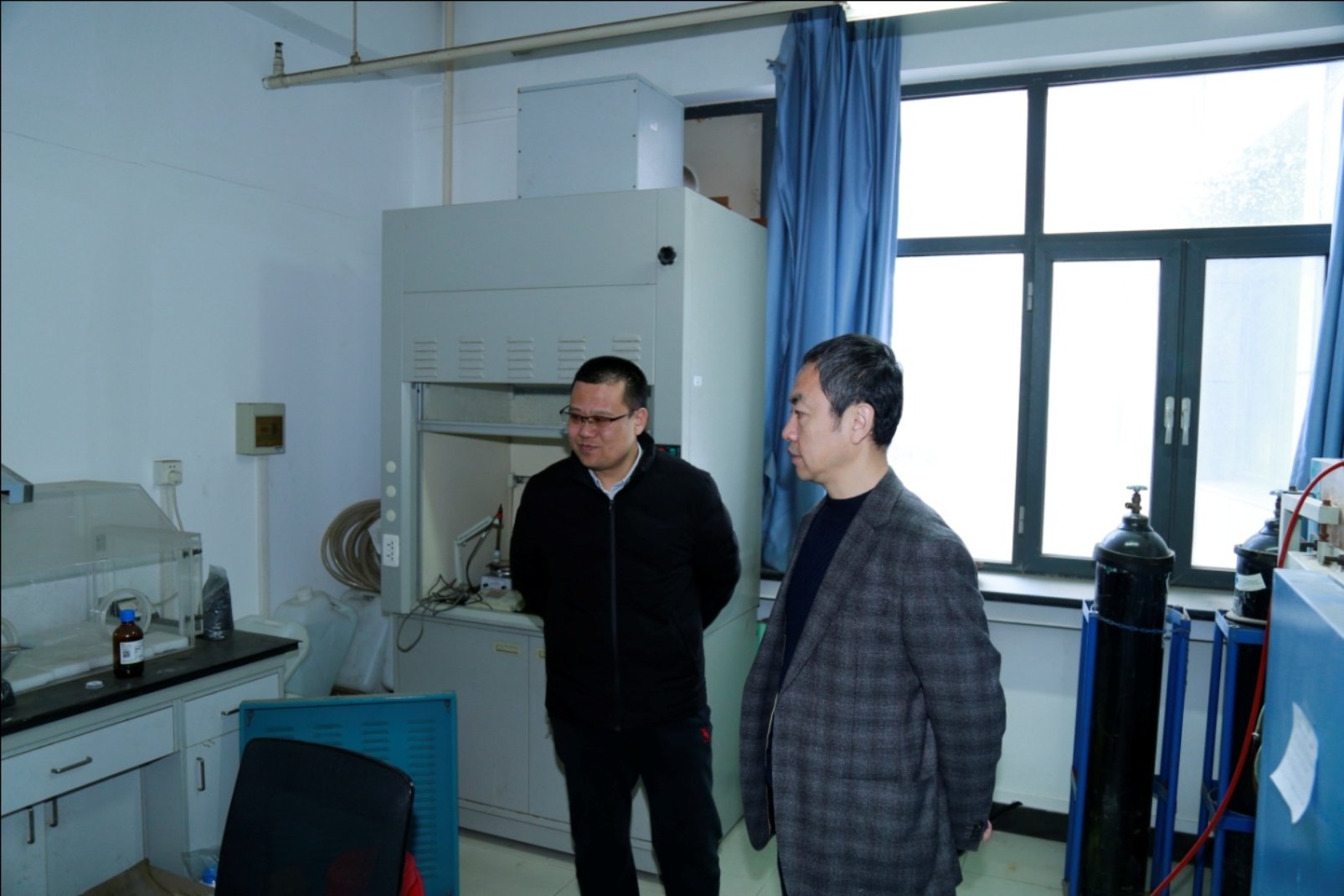 公司领导对照学校最新通知的检查要求,对实验室基础设施、消防设施、气体钢瓶、化学品、仪器设备和实验防护用品等逐一进行检查。特别是对基础安全(消防安全)、危险化学品安全(化学品存放、易制爆化学品等管理)、特种设备安全(实验气体管理)等几个方面作出强调。