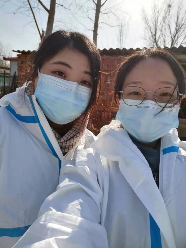 研新能源2043班佟鑫所在的北店村中很多人不会网上预约核酸检测,村干部召集老员工作为志愿者,为村民提供指导和帮助。她与发小穿上了最美的防护服,维持秩序,登记信息。“参加志愿服务虽然辛苦,但当看到村民们一个个有序检测完毕后回家时,内心会有很大的满足,感觉一切都值得,很快乐。如果还有需要我的时候,我还会积极地为社会贡献出自己微薄的力量!”她说,“全民检测真的很震撼,世界这么多国家,只有我们国家有如此强的号召力,大家积极配合,尽自己的一份力量,我相信国家一定能打赢这场疫情防控阻击战!”