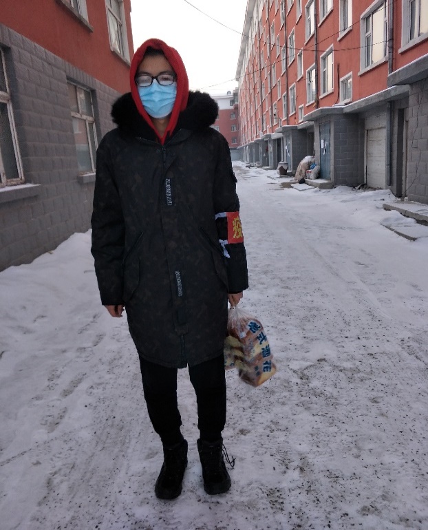 新能源2006班李明朔的家乡黑龙江绥化市爆发疫情,当他看到县团委招募疫情防控志愿者时,他第一时间主动报名参加,贡献一份自己的力量。在-20℃的冰天雪地中,他帮助居家隔离的居民购买生活必需品,协助社区管理人员进行排查工作,解决居民遇到的各种问题。虽然天寒地冻,但是他听到居民对他们赞赏,顿时心中涌起暖流。作为新一代青年,他表示将继续参加志愿服务,用行动回馈家乡。
