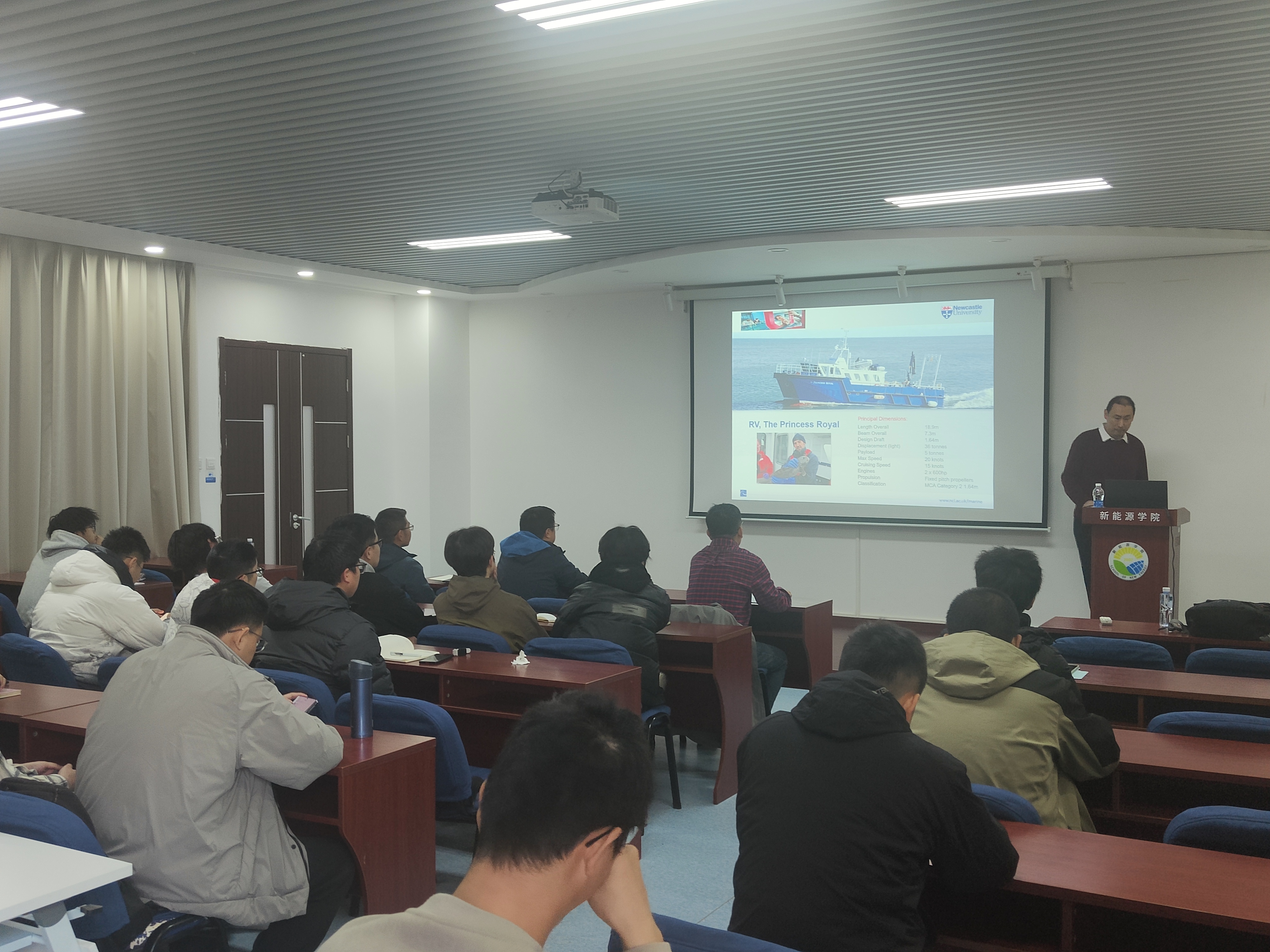 胡志强介绍了基于人工智能的浮式风电机组动力性能预报技术SADA,涵盖高阶非线性耦合动力性能分析方法Darwind、模型试验数据应用及人工智能技术研究,并进一步讲解了以SADA技术为核心的数字孪生技术,并应用于海洋风机基础冲刷问题,有效降低了海上浮式风电机组的监测与运维成本。此外,胡志强教授还介绍了纽卡斯尔大学和留学政策,为国际人才培养拓宽渠道。