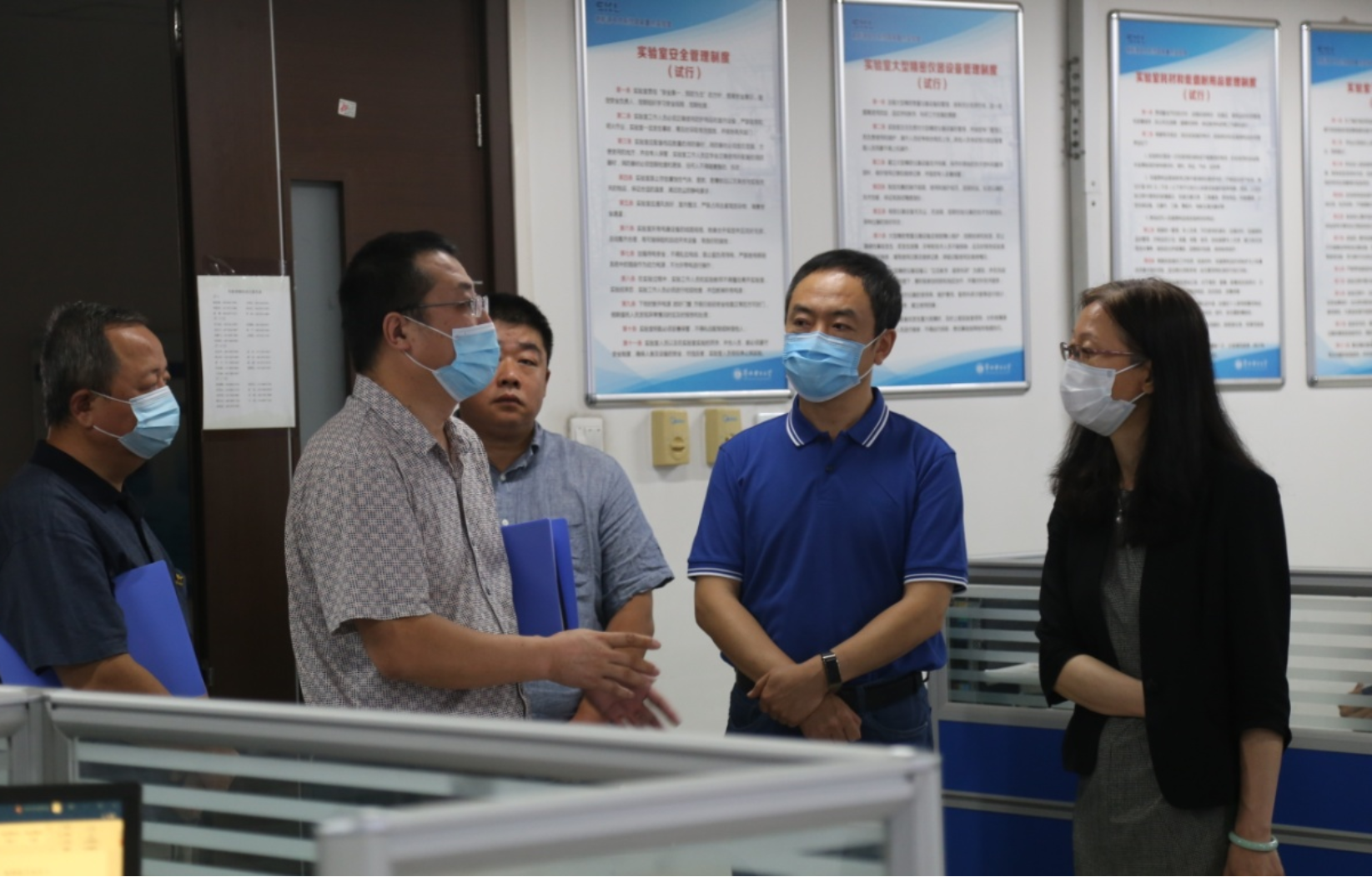 2020年9月4日上午,公司副董事长毕天姝、实验室管理处副处长高继周等老师,到公司进行实验室安全现场检查。公司经理李美成和书记王集令向毕董事长介绍了公司实验室的基本情况,并陪同毕董事长一行共同随机抽检了公司的多间实验室。