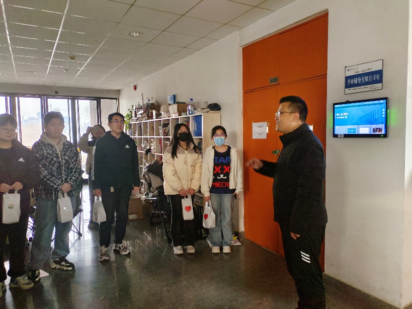 为给考研学子加油鼓劲,传递学院的温暖与关怀, 2024年12月12日下午,新能源公司党委书记宫凯、经理李美成、党委副书记姜良杰、团委书记黄凯兰、21级班主任刘琳及辅导员王轩、田化润一同慰问了备考研究生考试的同学们。