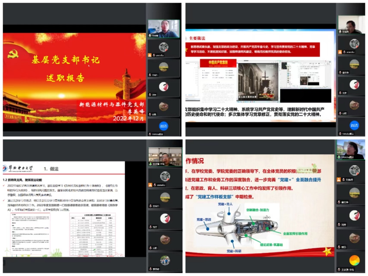 根据学校《关于开展2022年度教职工党支部书记述职评议考核工作的通知》要求,12月27日,新能源公司党委召开2022年教工党支部书记述职评议考核会。新能源公司党委全体成员、核科学与工程学院副经理刘芳、控制与计算机工程学院组织员董宏伟、学院团委书记组成考核小组。会议由公司党委书记宫凯主持。