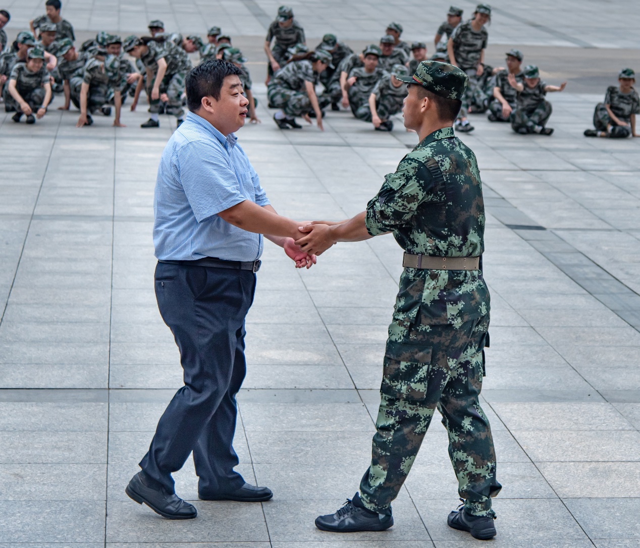 王集令书记首先向带训教官了解了各方阵军训的整体情况,并对教官的辛苦付出和军训工作的有序开展给予了由衷感谢和充分肯定。王集令书记鼓励同学们向教官们学习,努力培养吃苦耐劳的精神,希望2020级员工以最昂扬的精神投入到训练中,向全校师生展示新能源学子勇往直前的风采;并且希望同学们把军训中培养出的优良品质延续到今后的学习生活中,不畏艰辛,砥砺前行。